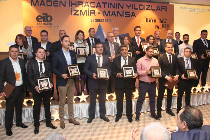 Ege Maden İhracatçıları Birliği’nin sektör toplantısı ve maden ihracatının yıldızları ödül töreni Çeşme Boyalık Beach Oteli’nde gerçekleştirildi. Etkinlikte 2018 yılında İzmir ve Manisa illerinde 2 milyon dolar ve üzeri ihracat gerçekleştiren 6 maden ihracatçısı, 16 doğaltaş ihracatçısı toplam 22 firma plaketle ödüllendirildi. Maden ve doğaltaş ihracatçılarına gazeteci Saadet Erciyas’ın “Estetik Ebru” projesi kapsamında üretilen, ebru…